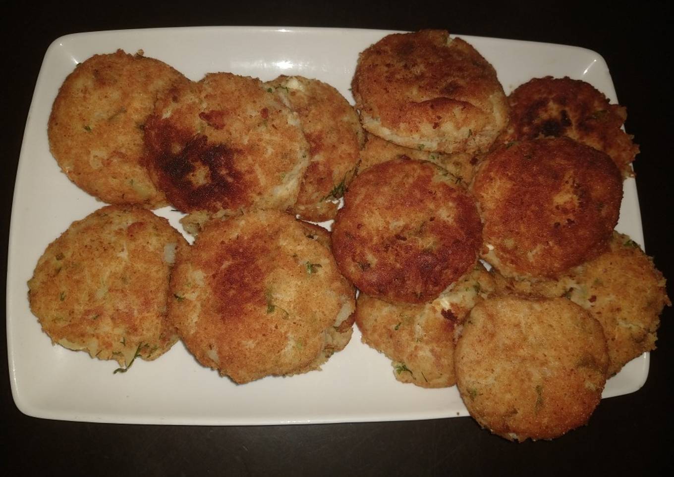 - Ponemos aceite en una cazuela anti-aderente. Mojamos nuestras manos y agarramos una cantidad de las papas, tomamos el queso panela ya cortado en cuadritos y colocamos enmedio de nuestras tortitas y las pasamos por un poco de pan molido y las ponemos en el aceite, dejemos que doren y tomen color posterior las volteamos.