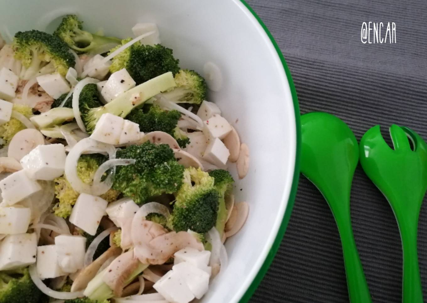 Ayer vi por internet esta receta y no he podido resistirme a probarla y compartirla con vosotros. Es una ensalada diferente, con vegetales en crudo. Podrían pasarse ligeramente por la sartén, pero es importante que queden lo más crujientes posible, y sin apenas cocinarlos, para mantener todas las propiedades que tienen.